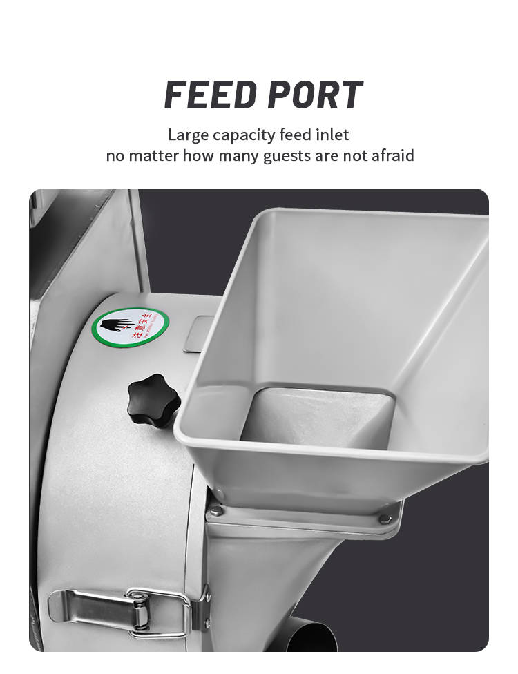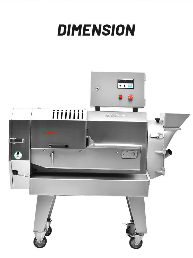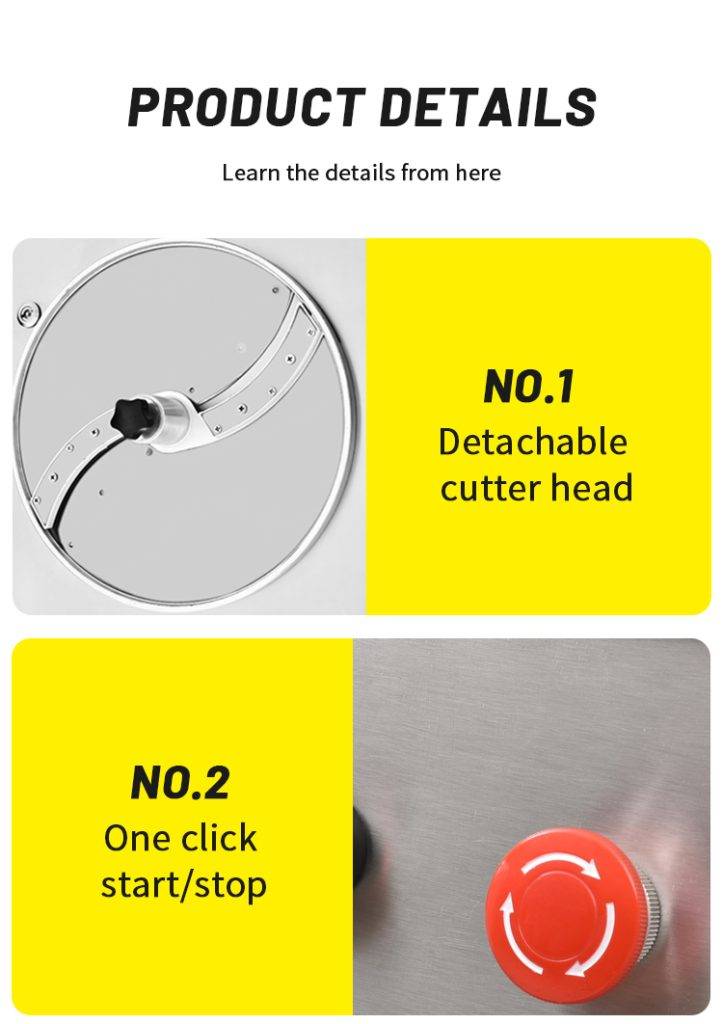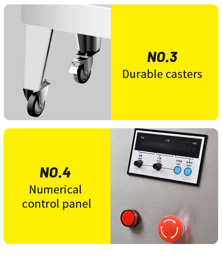 - The speed of conveyor belt and bladeis controlled by frequency converter, and the length of cut vegetables can be adjusted.