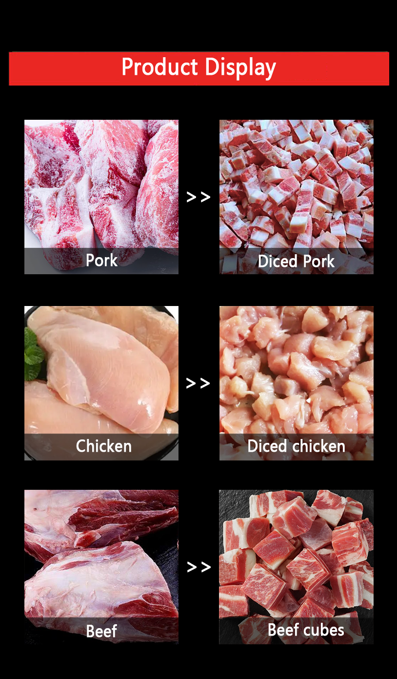 FUNCTION:DICING FROZEN MEAT,VEGETABLE OR FRUIT